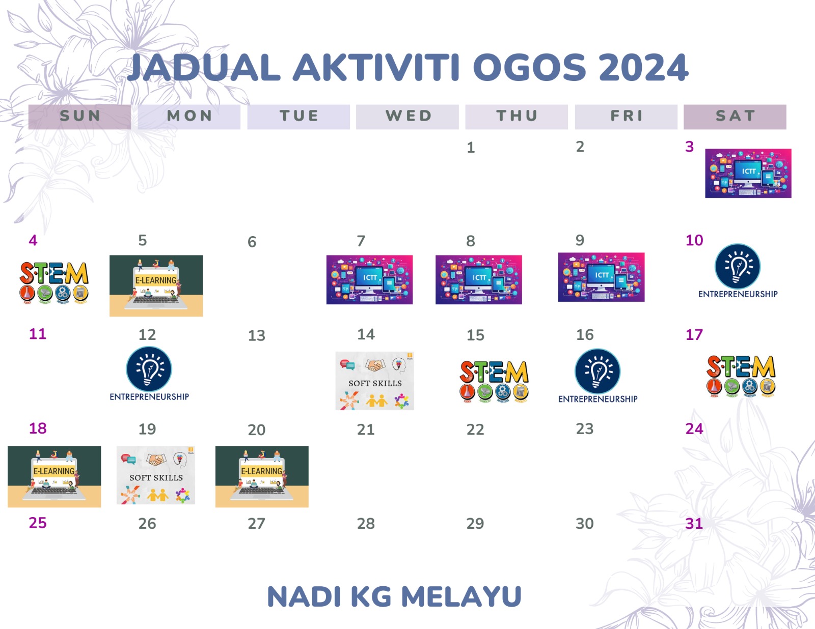 Tarikh : 5 Julai 2024 Masa : 2.30 petang – 4.30 petang Lokasi : NADI Kampung Melayu Peserta : 9 Orang Ahli NADI Tujuan Belajar membuat jadual waktu kelas dengan menggunkan microsoft word. Aktiviti Sesi latihan bermula dengan memberi contoh […]