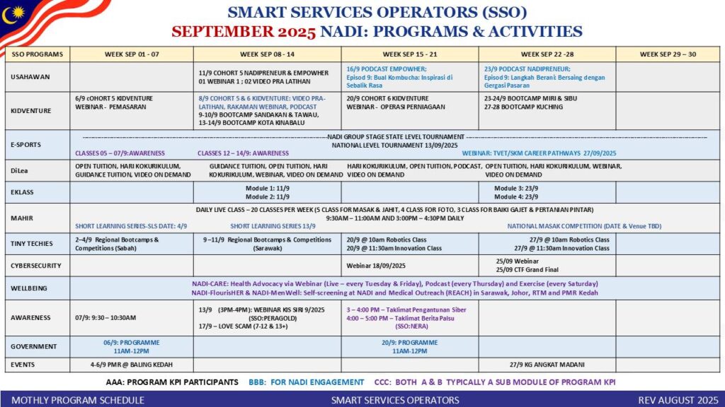 Takwim Perkhidmatan Pintar Bulan September 2025