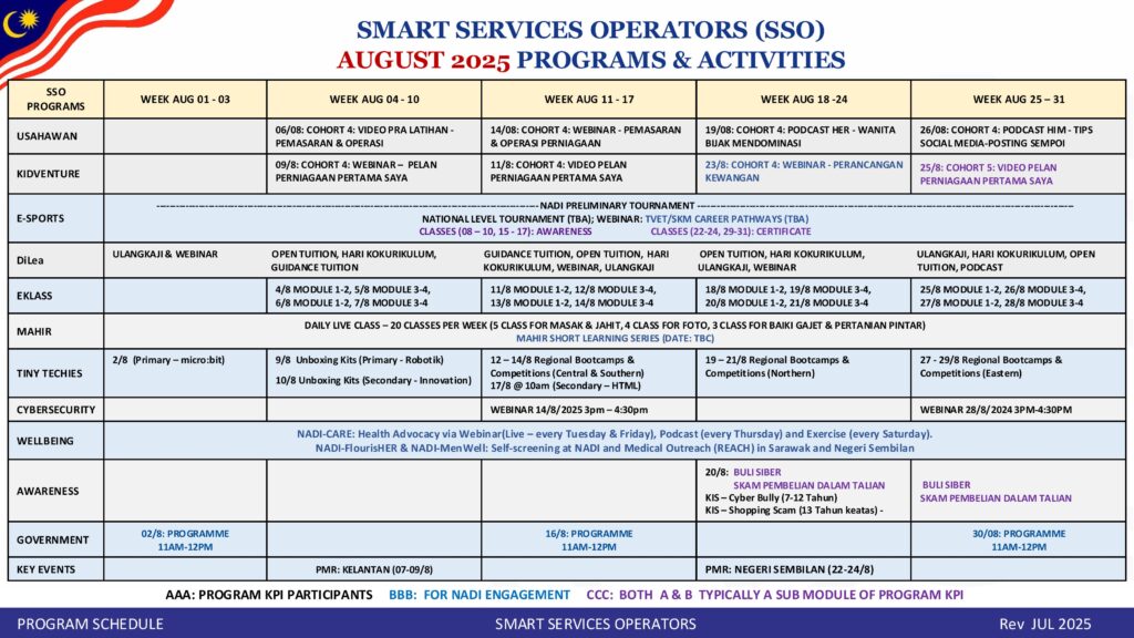 Takwim Perkhidmatan Pintar NADI Kampung Melayu Bulan Ogos 2025